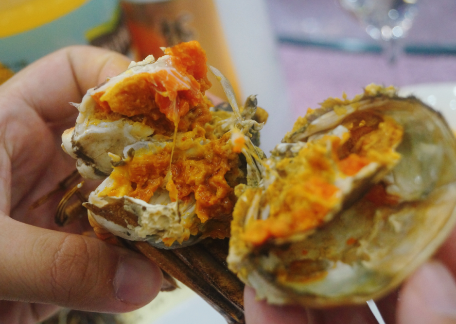 蟹乃食中珍味,素有“一盤蟹,頂桌菜”的民諺,故盛宴上第一道菜便是大閘蟹。此蟹是江蘇區(qū)域同事帶回來的全程使用我司產(chǎn)品養(yǎng)殖出塘的大閘蟹,此批雌蟹只只體大膘肥,青殼白肚,金爪黃毛,簡直像個威風(fēng)凜凜、光彩照人的鐵甲將軍。經(jīng)清蒸后,蟹呈亮橘紅色,在揭開蟹蓋的那一剎那,入眼的膏黃脂肥肉緊,入口鮮甜細(xì)潔滑嫩,不愧為人間美味。